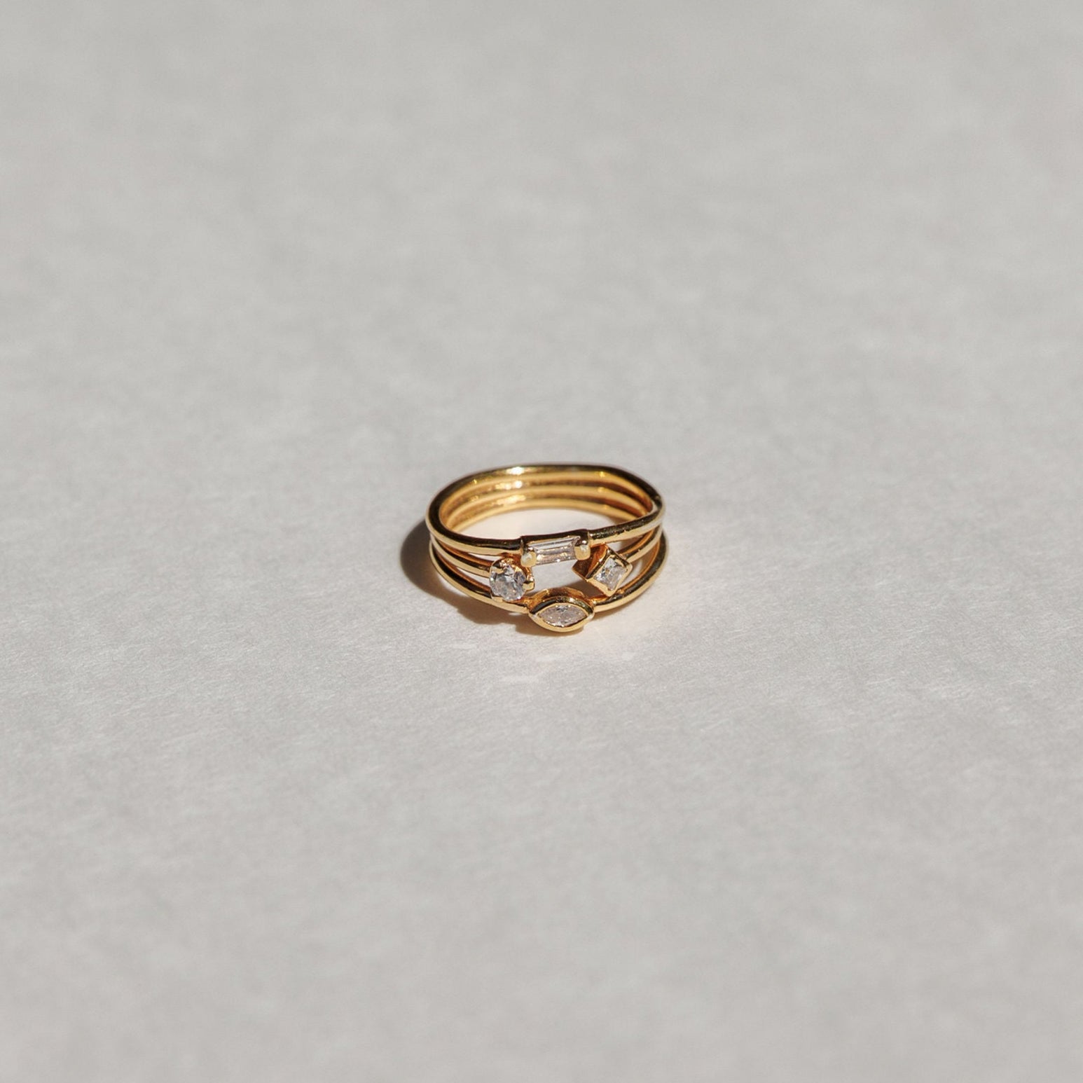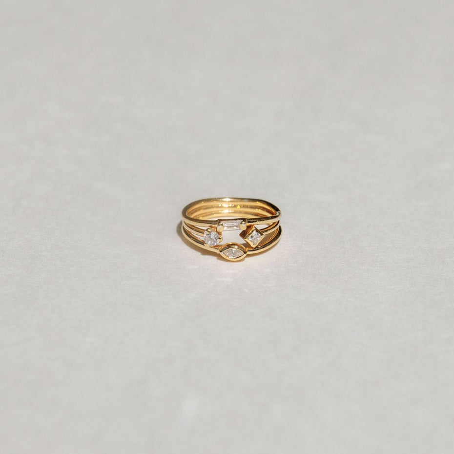 - 1 emerald cut, princess cut, round cut, and marquis diamond