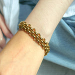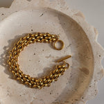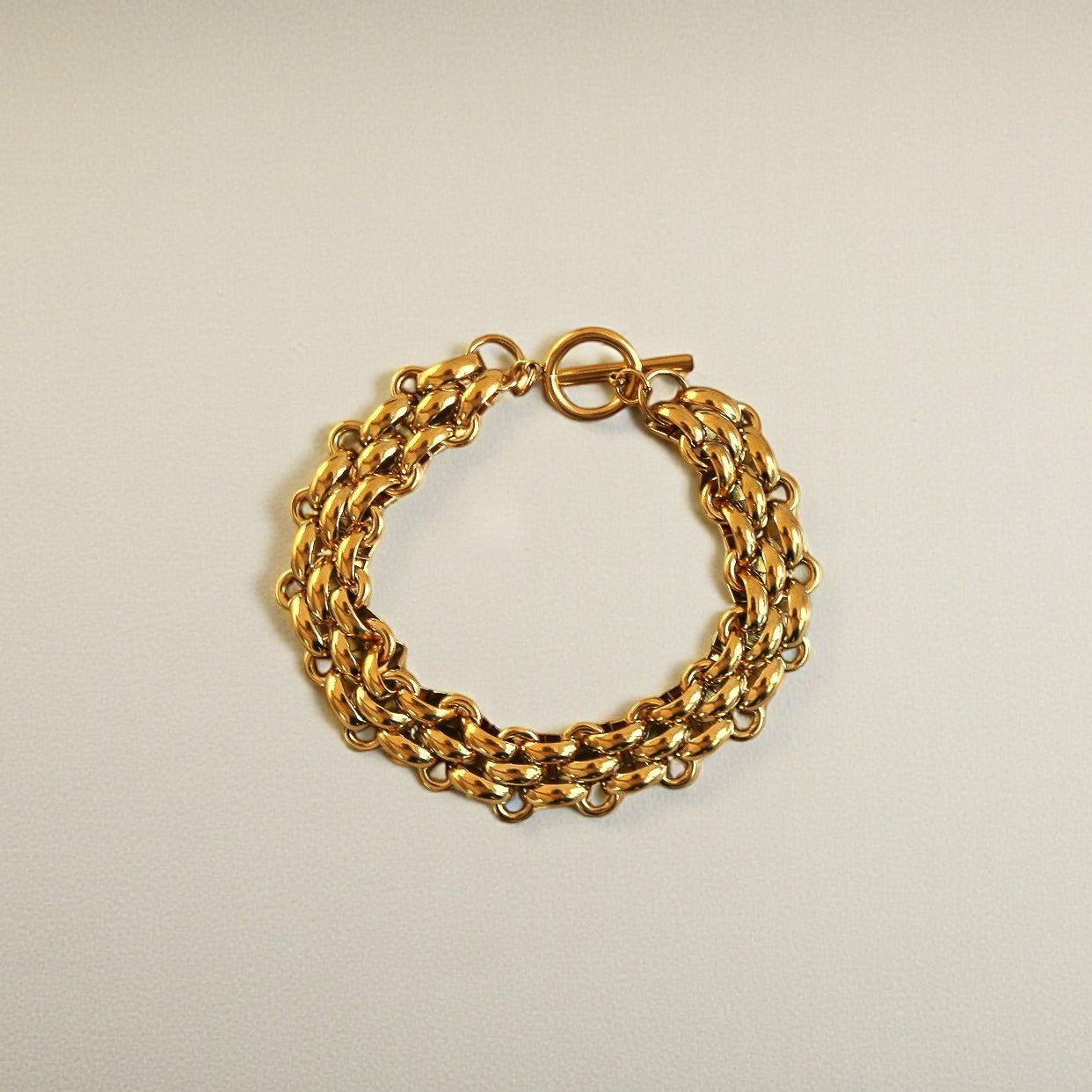 Bold yet timeless, the Arden Bracelet echoes the vintage allure of the Arden Necklace. Crafted from sculptural, heavyweight links with a sleek toggle closure, it’s designed to feel as substantial as it looks. Each piece is plated in a rich layer of 18k gold for lasting radiance and quiet luxury.