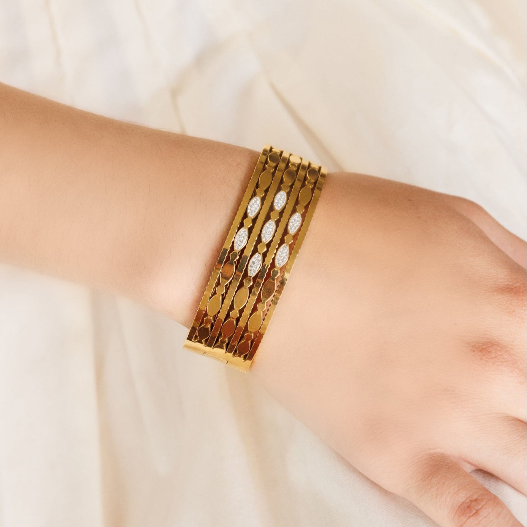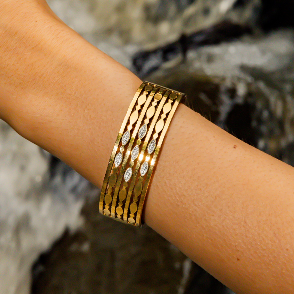 Inspired by the strength and artistry of traditional tribal South Asian adornments, the Anokhi Bangle is both heritage and modern sculpture. Its bold, architectural form honors centuries-old design while reimagining it for today - a piece that feels powerful, unique, and timeless.