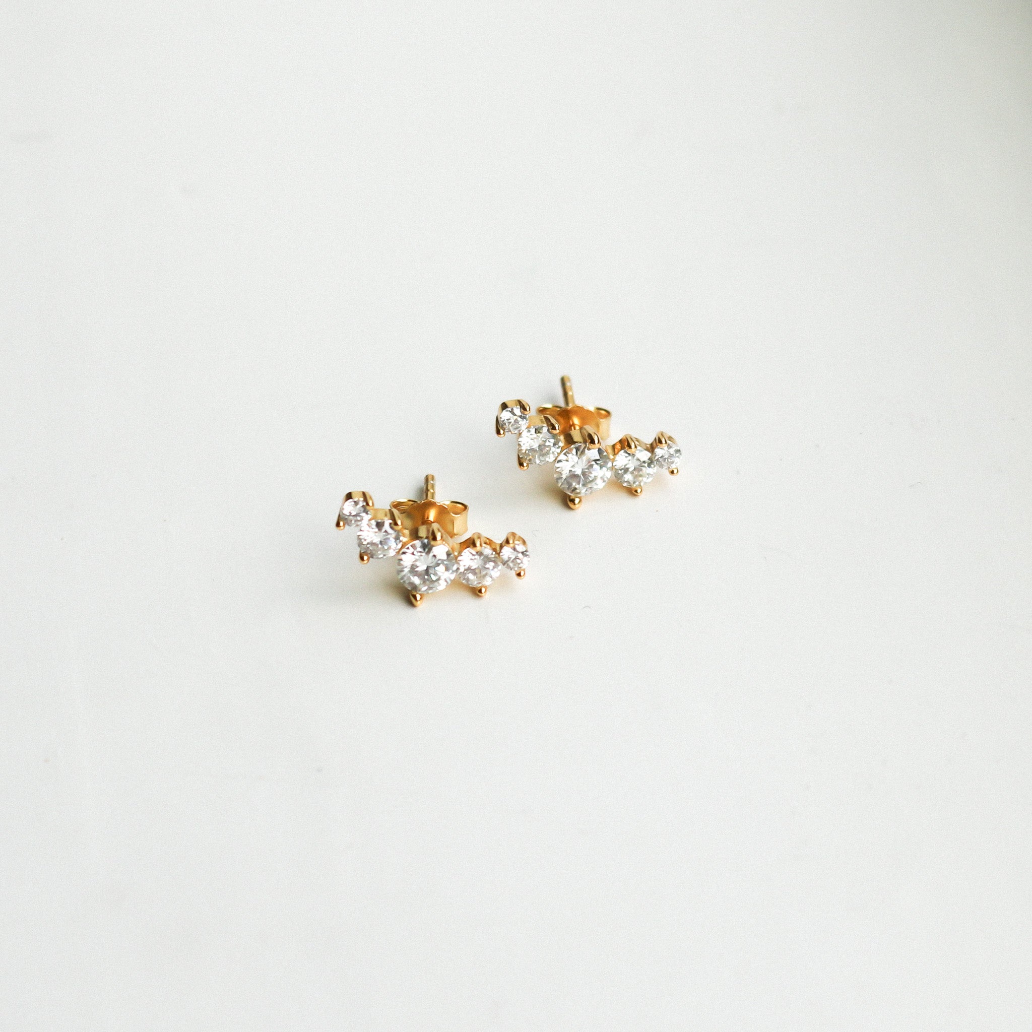 Our Anya studs feature a graceful row of four sparkling moissanite stones set in a sleek curve. Perfect for adding a touch of brilliance to your everyday style or layering for a modern, multi-pierced look. Crafted with timeless sophistication in mind, these studs are a must-have for any jewelry lover.