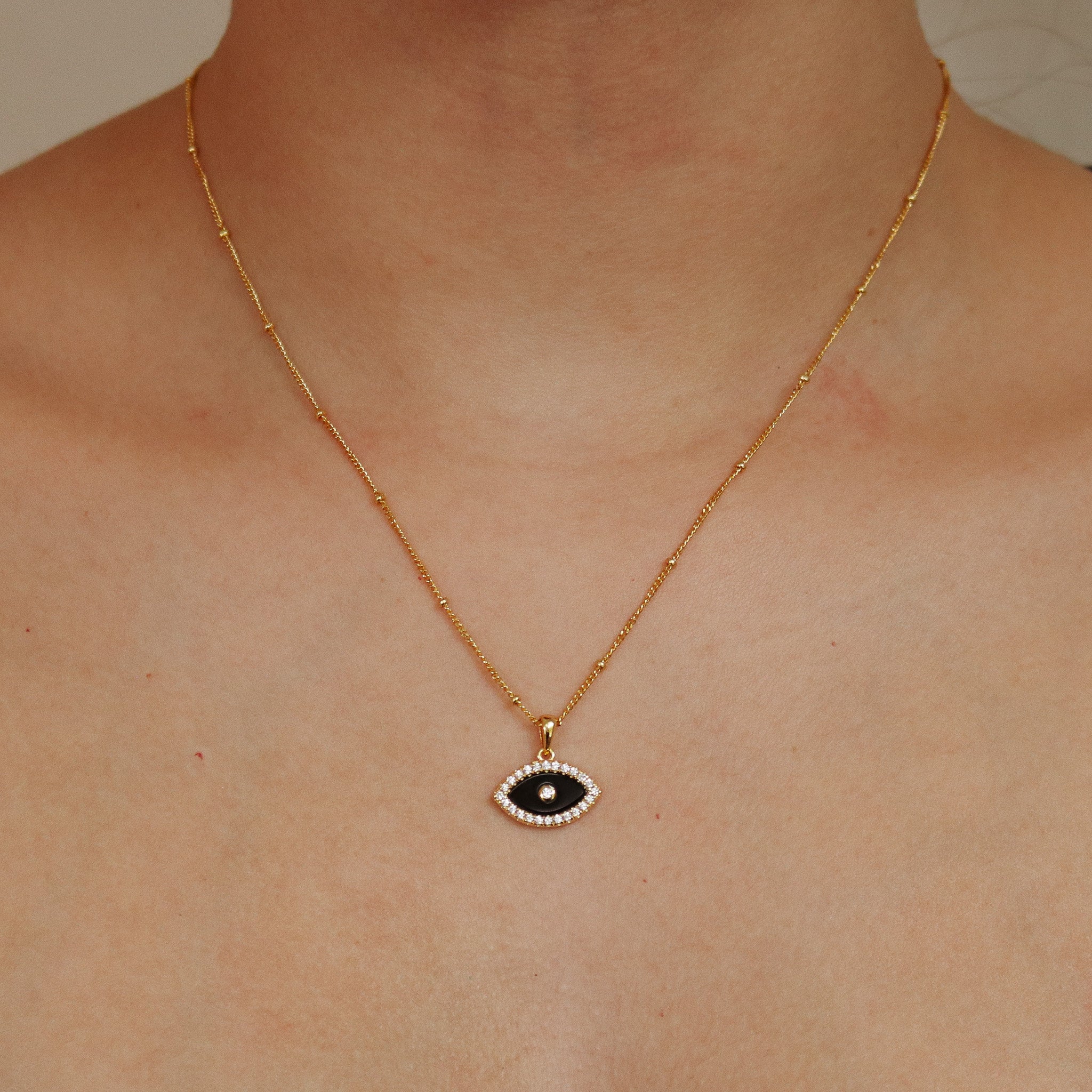 Keep negativity far away and peace close - our Black Agate Evil Eye necklace, artisan-made in small batches, a timeless symbol of beauty and protection. Black Agate - the stone for grounding and protection. A protective stone that helps one remain calm and focused.