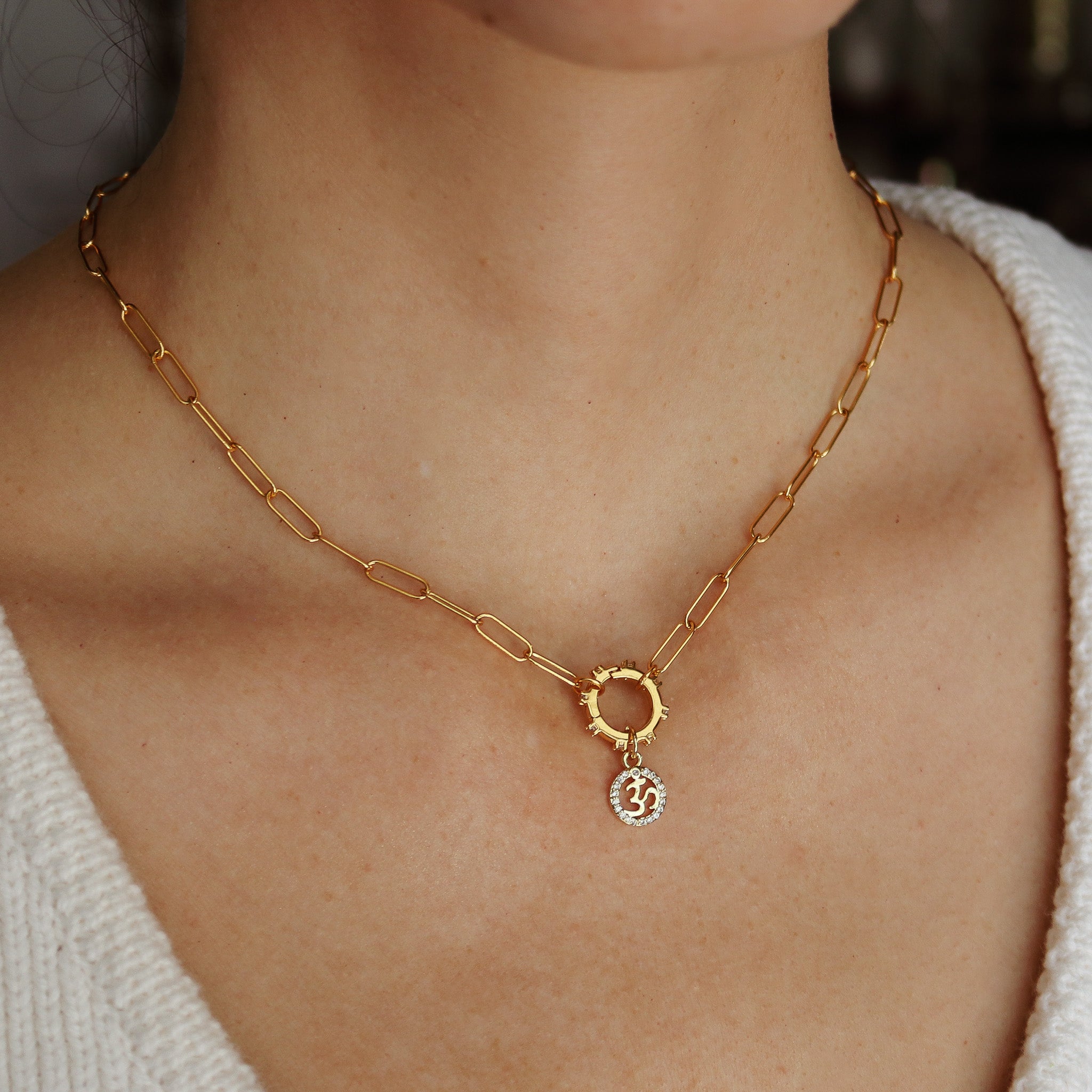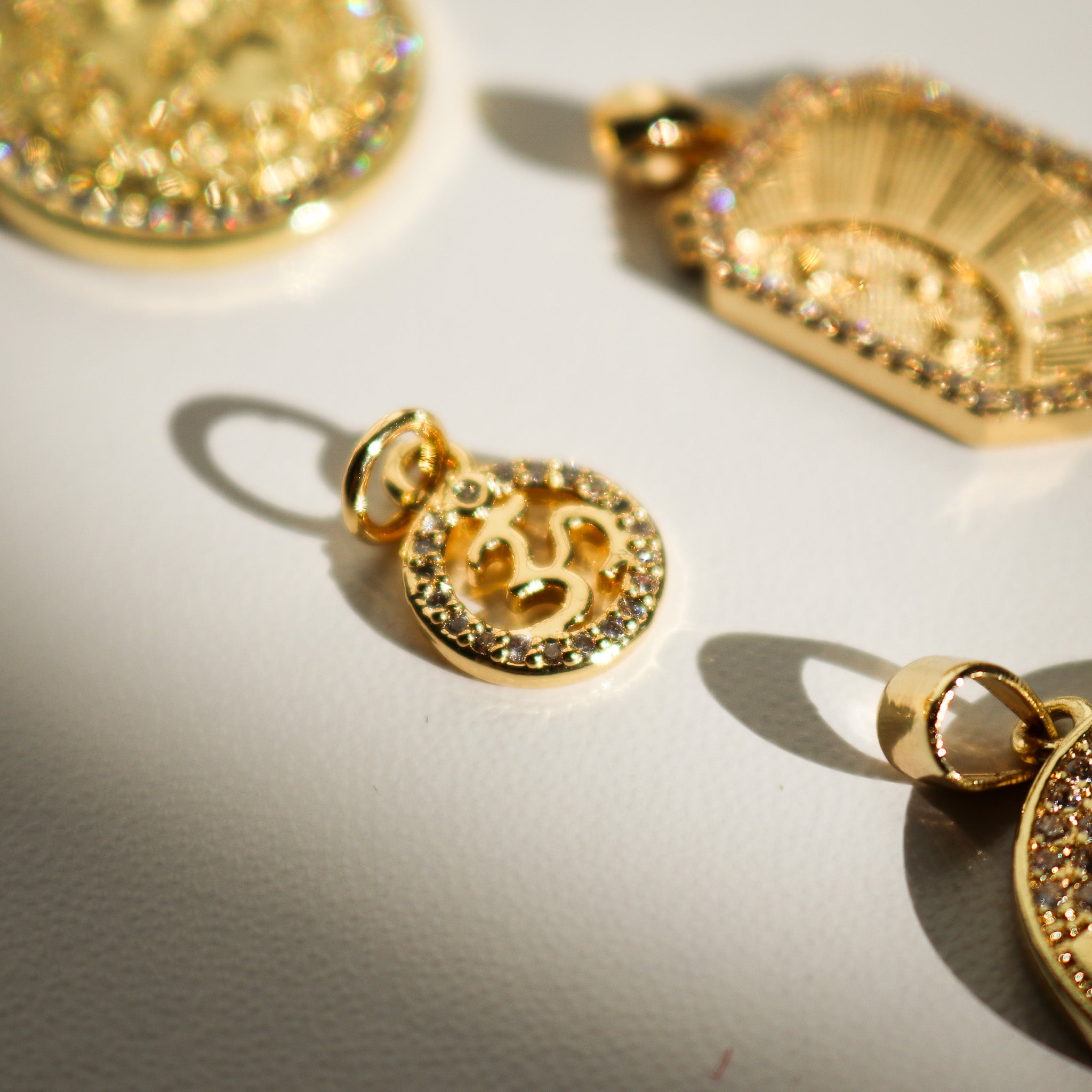 Embrace peace and spirituality with a delicate tiny Om charm. Set in a pure 18k gold-filled setting, this charm exudes timeless elegance while symbolizing harmony and divine energy.