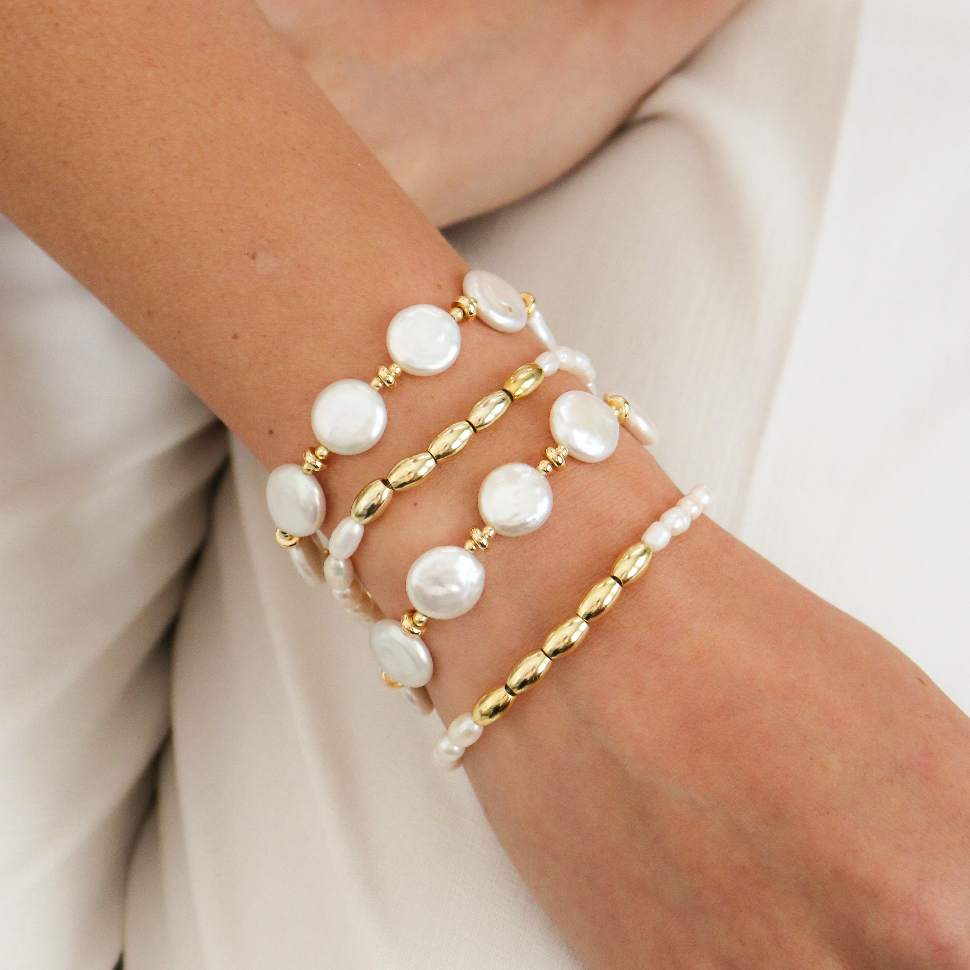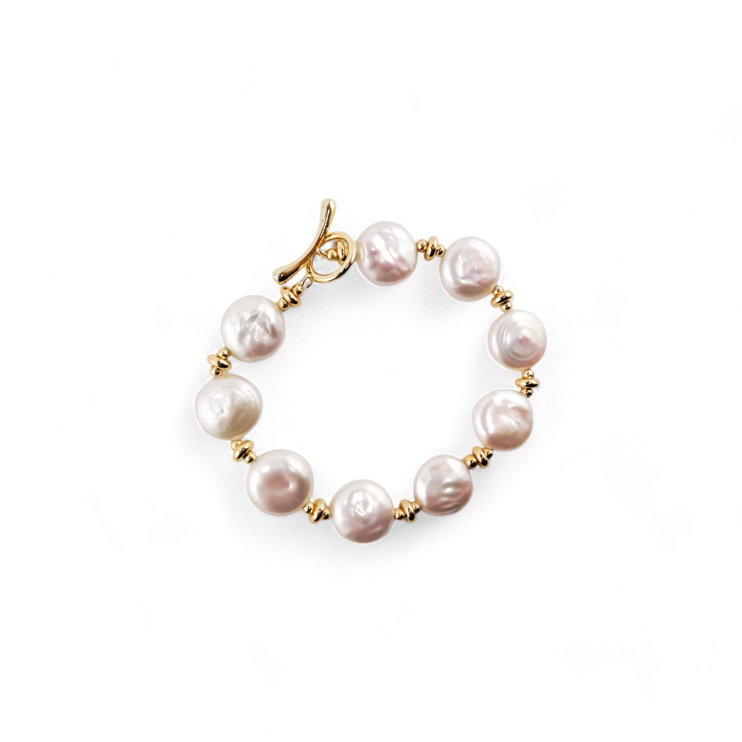 Enhance your jewelry collection with our flat freshwater pearl bracelet. A stunning blend of natural elegance and luxurious design. This exquisite bracelet features lustrous flat freshwater pearls with a toggle closure.