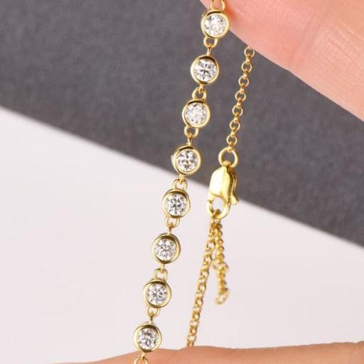 Elevate your everyday elegance with our Dani Bezet Bracelet. This dainty, lightweight design features a seamless row of brilliant moissanite stones, each delicately encased in a bezel setting for a modern yet timeless appeal.