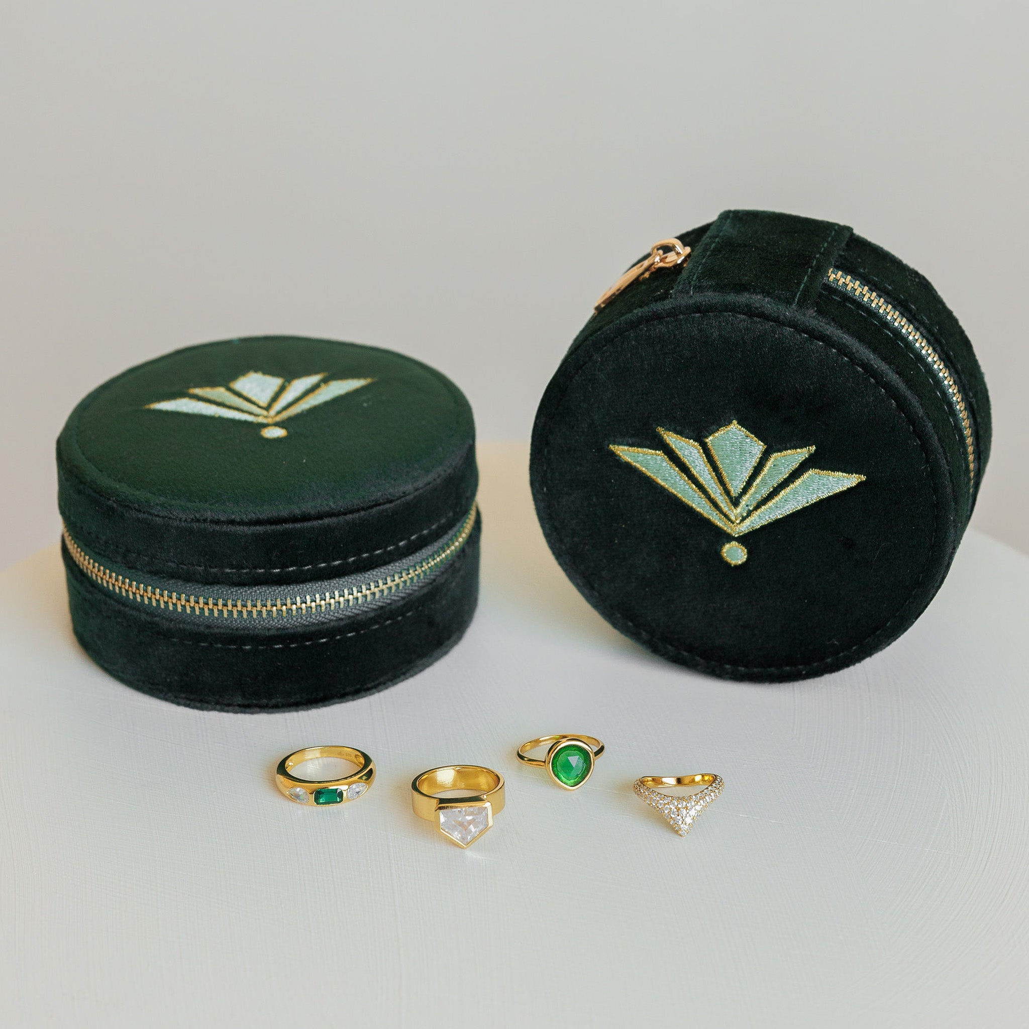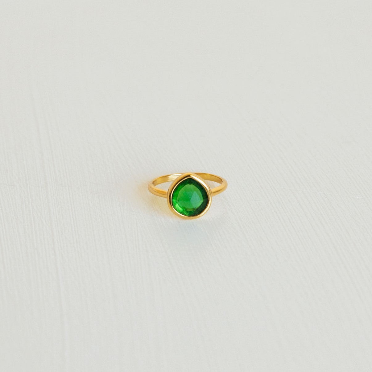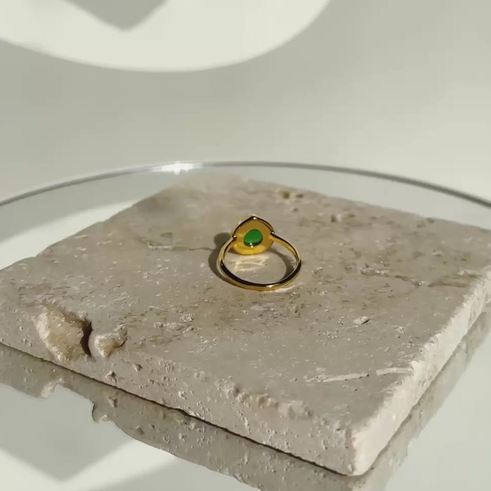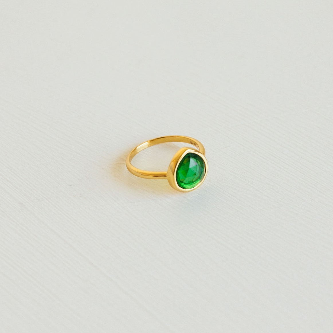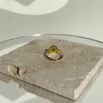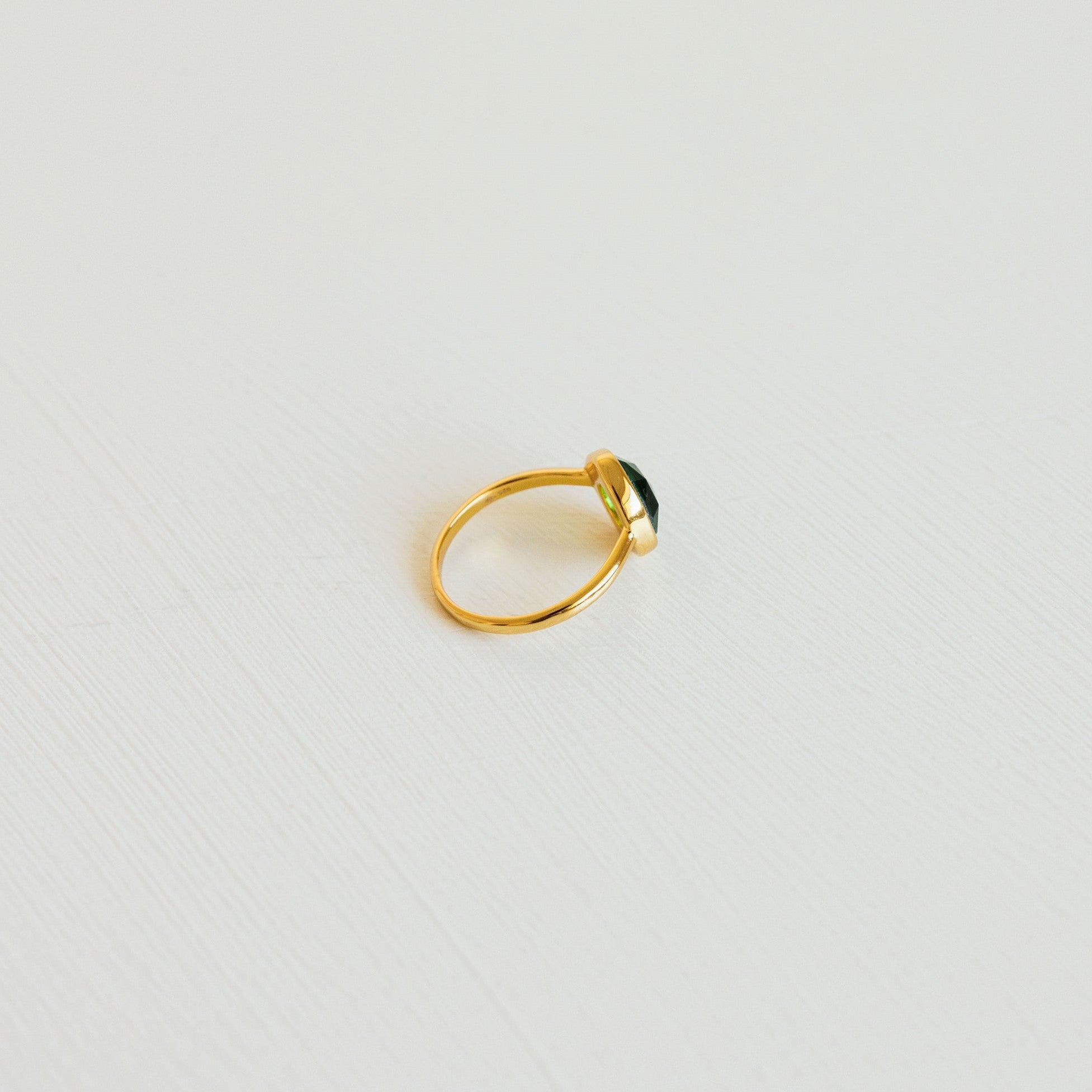The Esme Bezel Onyx Ring features a hand-cut green onyx stone, bezel-set for a sleek, modern look. Its refined silhouette makes it perfect for layering or wearing solo, adding just the right pop of color to any stack.