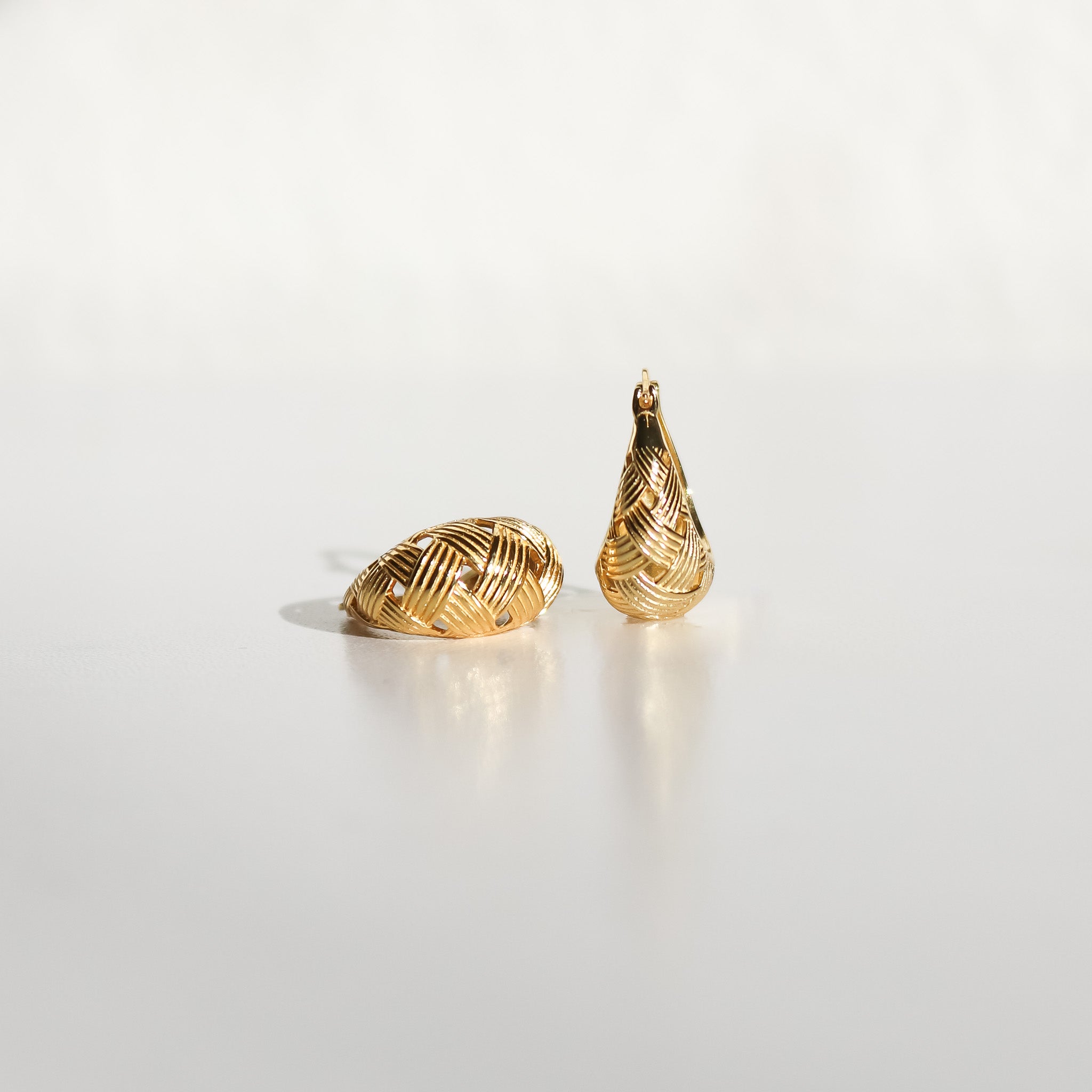 Featuring an intricate basket weave design, they add texture and sophistication to your everyday look. Lightweight and versatile, these earrings are perfect for dressing up or down, offering a rich yet understated charm that celebrates tradition with a contemporary twist.