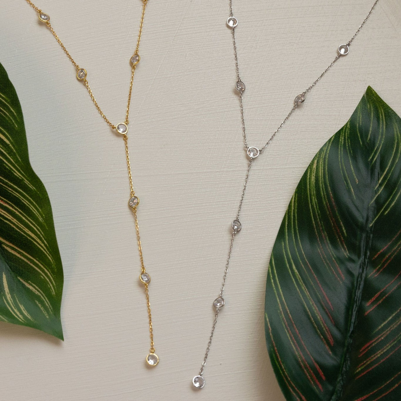 Transform your look with our exquisite lariat necklace! This captivating piece features a delicate lariat design adorned with shimmering tiny stones, effortlessly adding a touch of elegance to any outfit.