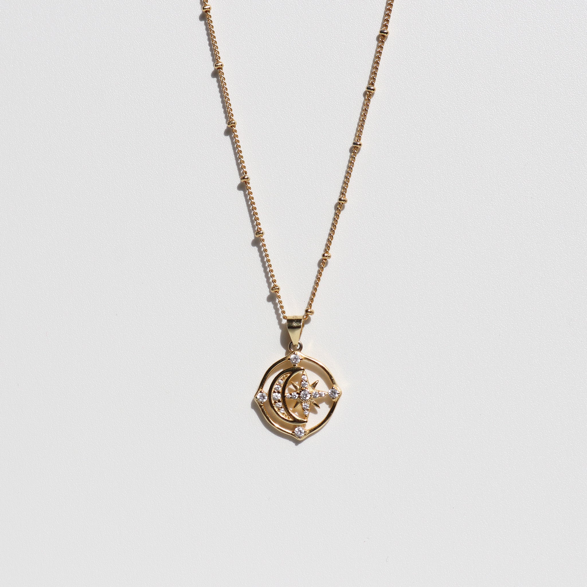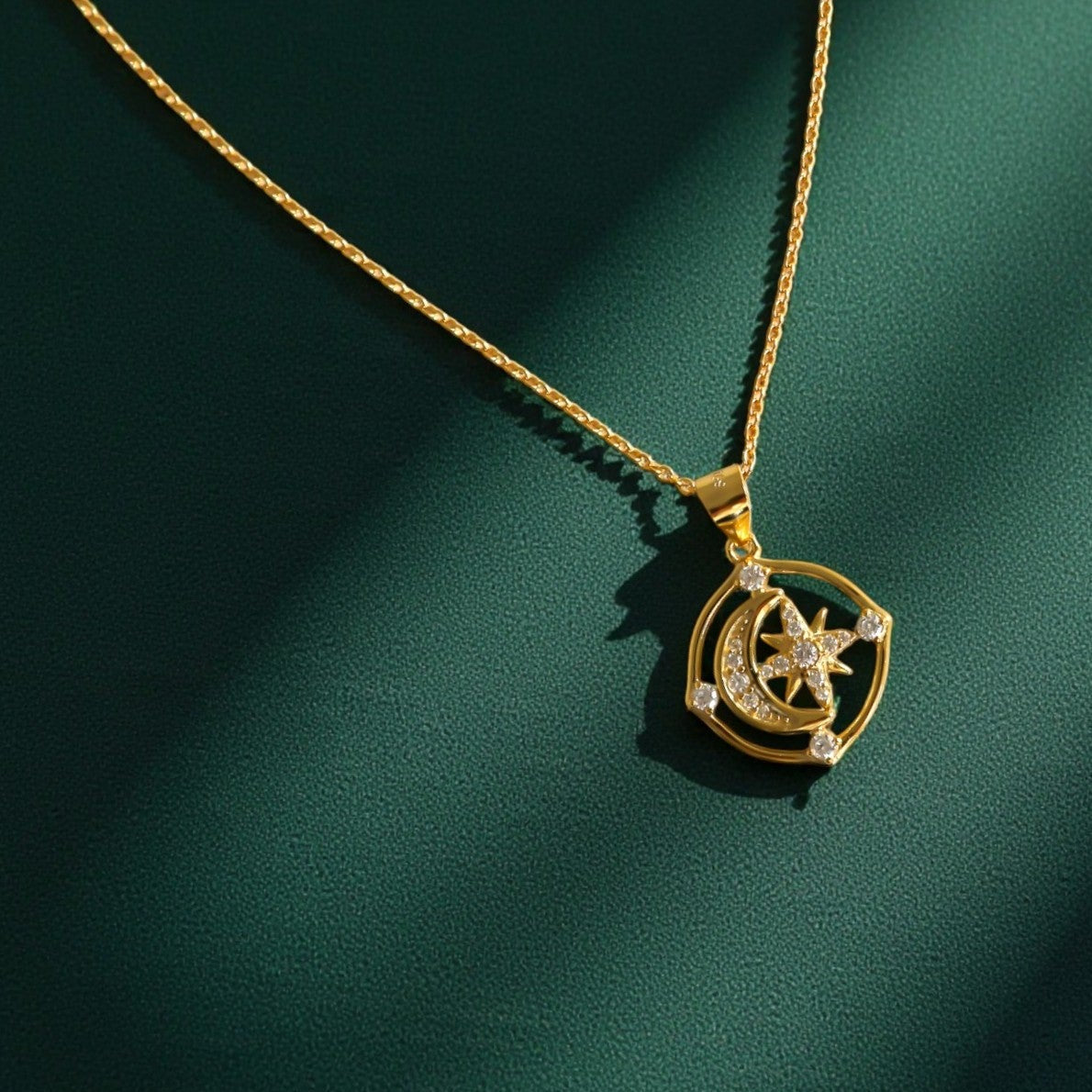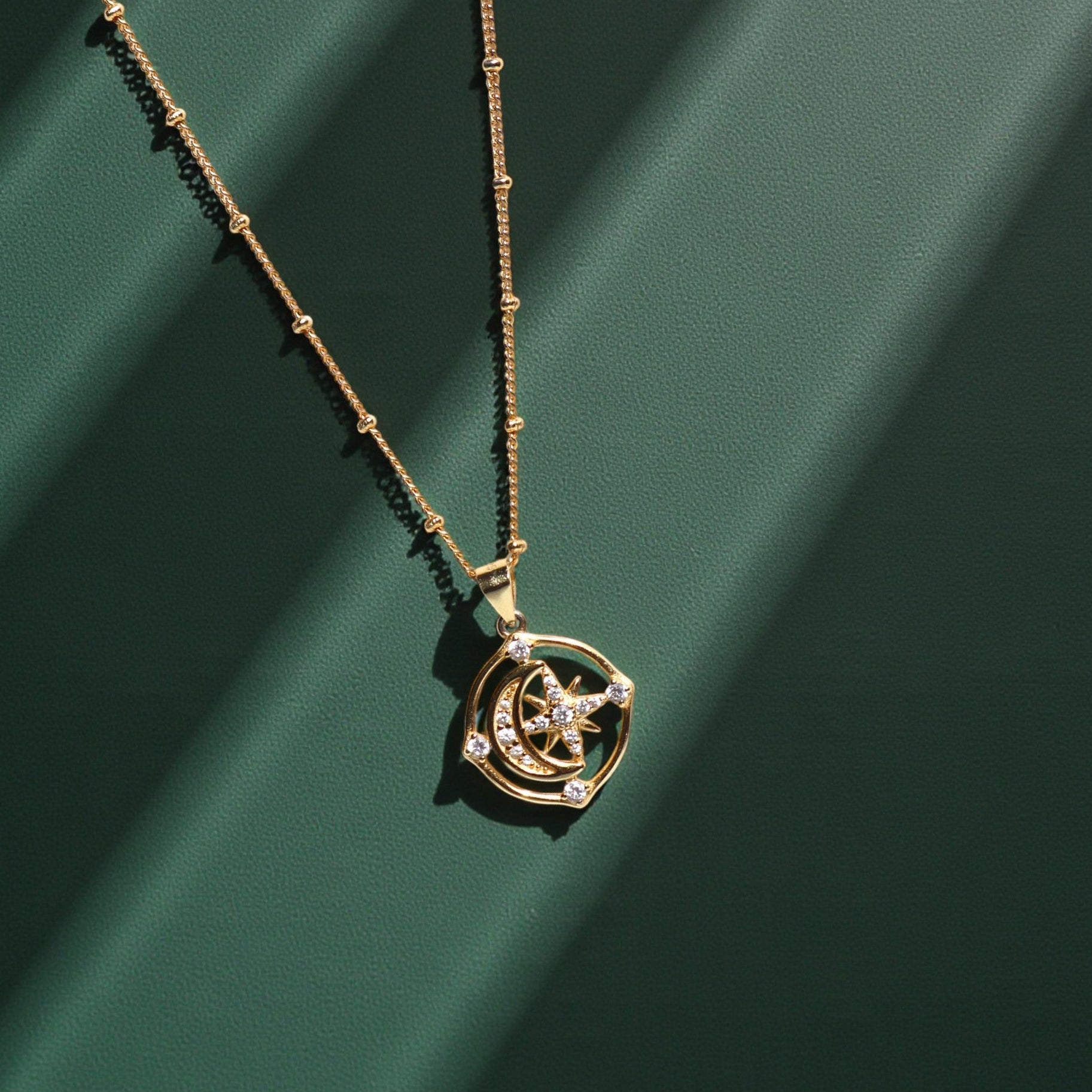 Embrace the magic of the cosmos with our celestial moon and stars necklace. Crafted with a stunning design that captures the enchanting beauty of the moon and stars, this necklace serves as a daily reminder of the universe's wonders. Perfect for everyday wear, it adds a touch of celestial elegance to any outfit.