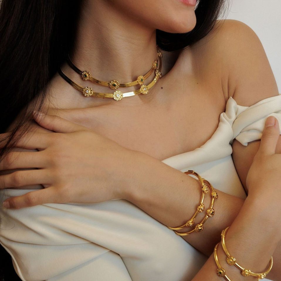 Kali Necklace and Bangle Set together. Choose from Emerald stone or White stone.