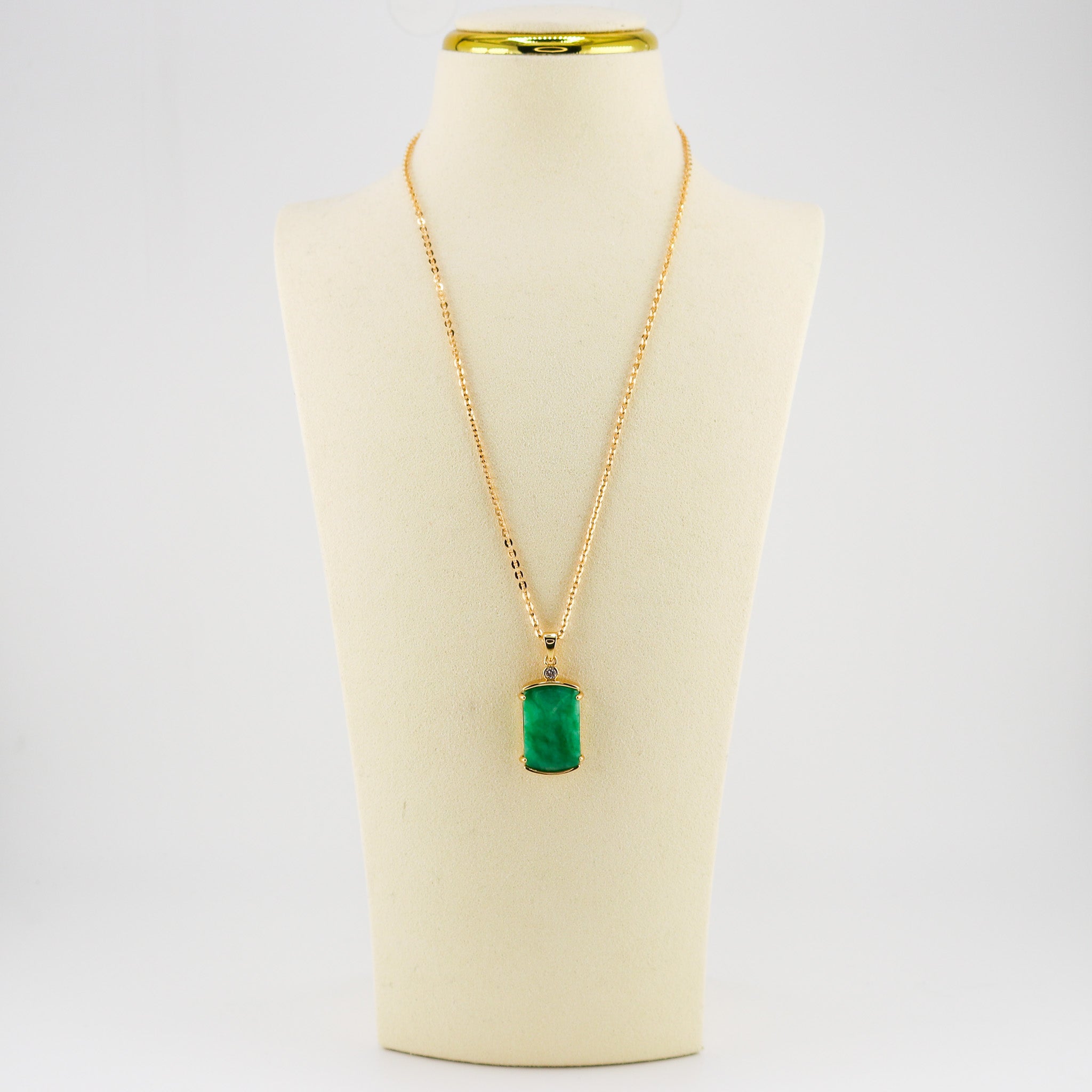 Demi-fine; 18k Gold Filled, rectangle Jade, brilliant cut stone