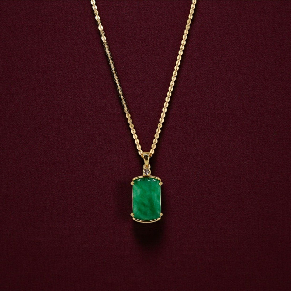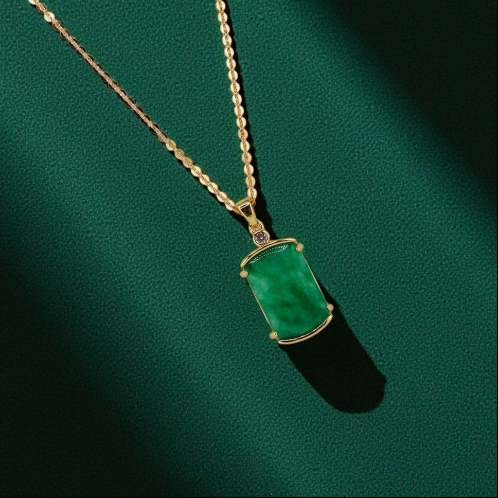 A bold, sculptural jade pendant takes center stage in this striking statement piece — a blend of strength, artistry, and quiet elegance. Its rich green hue, long revered across Asian cultures for protection and prosperity, makes this necklace both powerful and deeply meaningful.