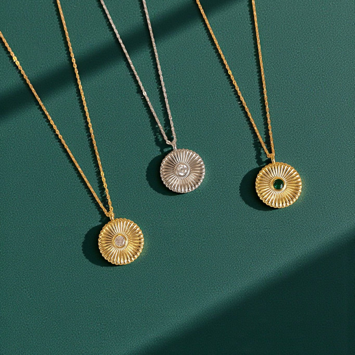 Illuminate your style with our bestselling Surya Necklace! This exquisite piece features a beautifully crafted sun design, with radiant rays surrounding a stunning round stone that bursts with sparkle. Suspended on a delicate, dainty chain, this minimalist necklace is both beautiful and unique, making it the perfect addition to any jewelry collection.