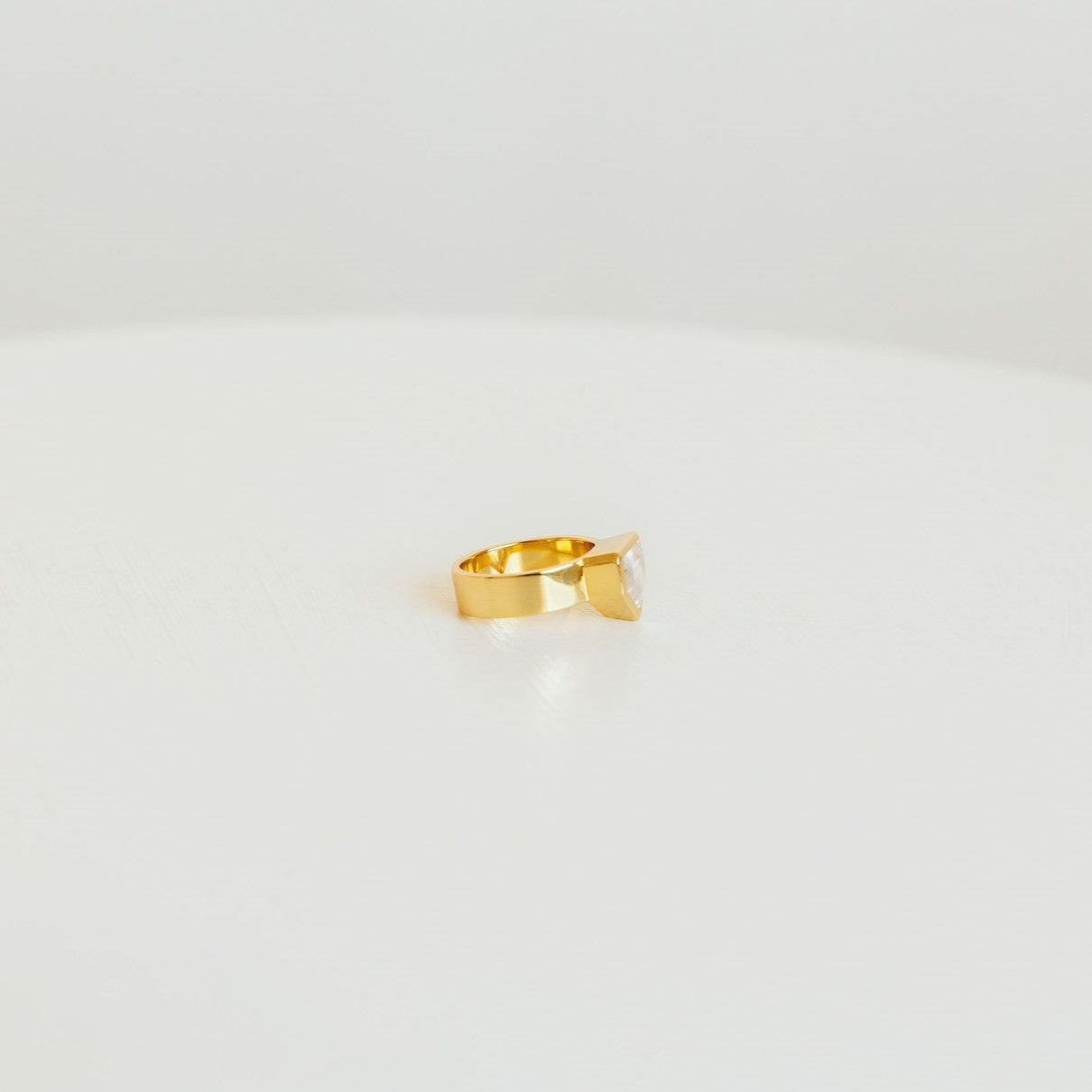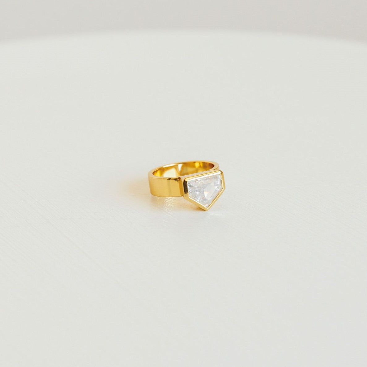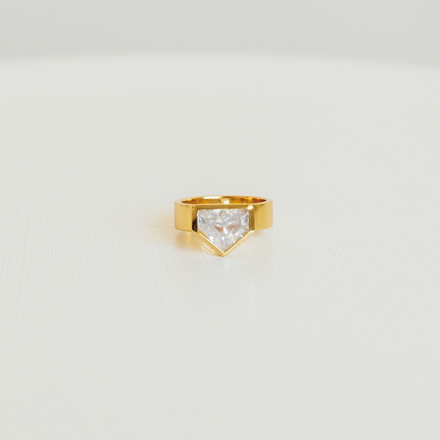 The Tara Ring is a statement in every way. Featuring a striking triangle-cut stone set in a bold, sculptural band, this piece is designed to command attention. Inspired by the Sanskrit word for “star,” Tara symbolizes strength, brilliance, and divine energy.