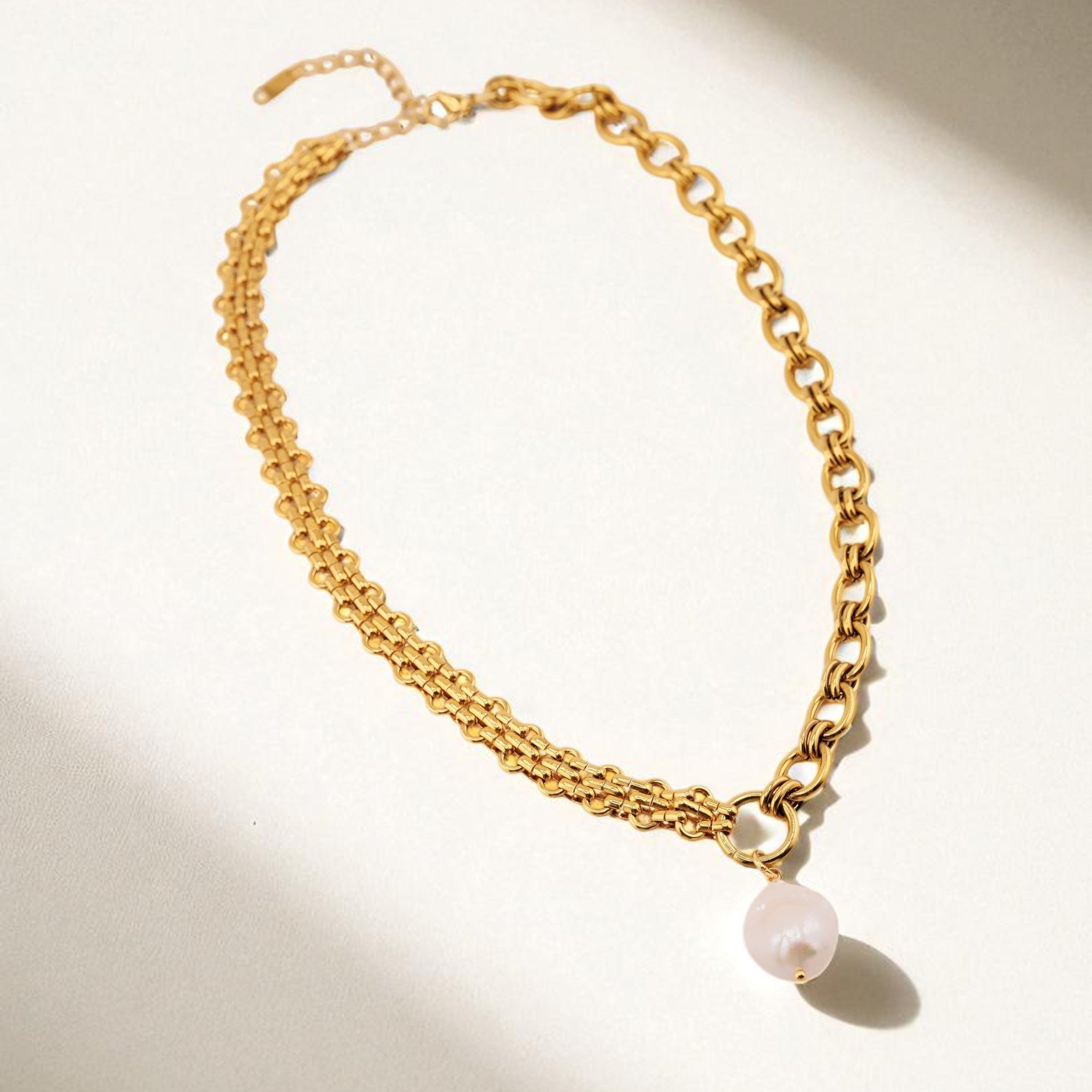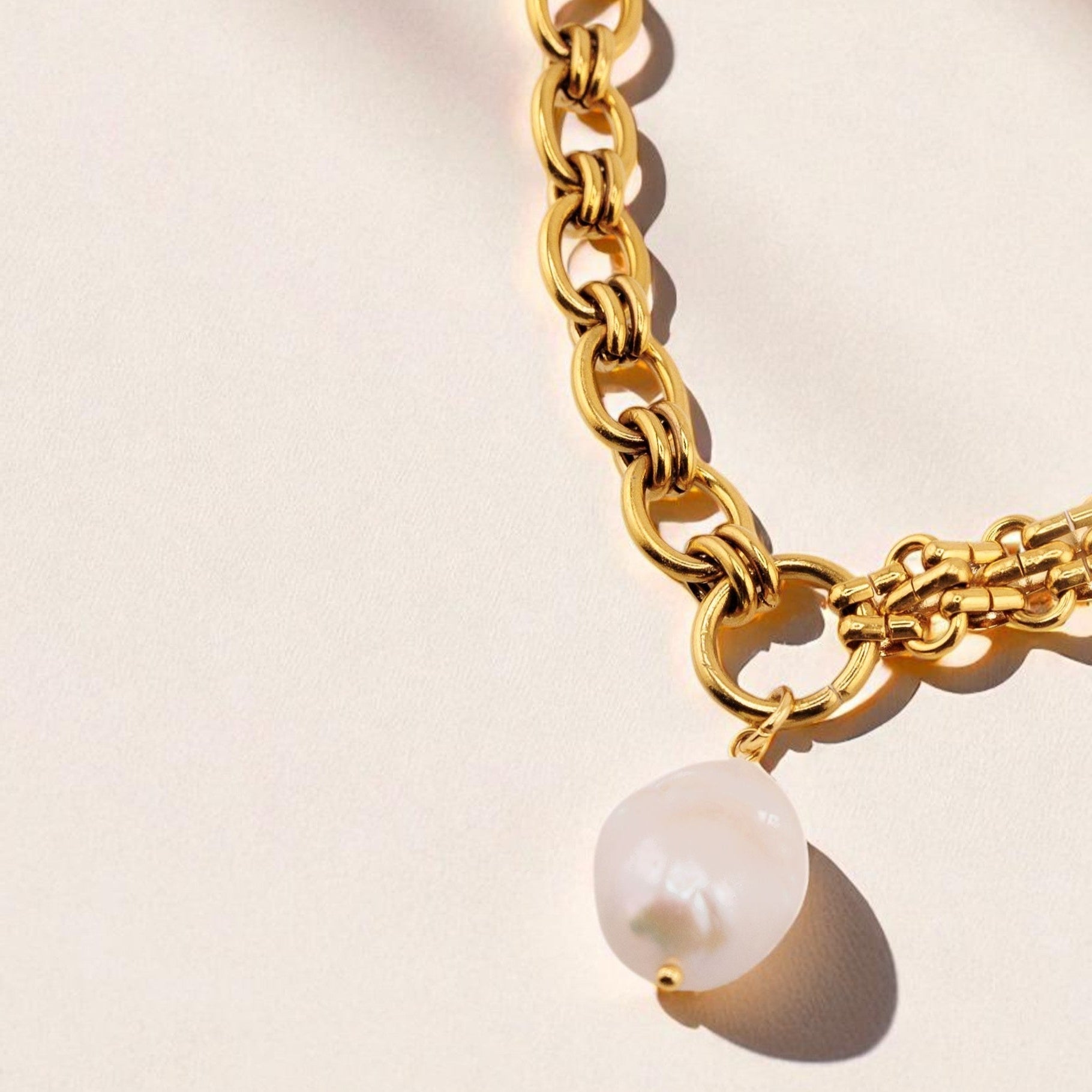 Bold gold links meet the organic beauty of a luminous baroque pearl in the Vera Necklace. Designed as a modern heirloom, Vera embodies strength and elegance - a statement piece to wear now and treasure forever.