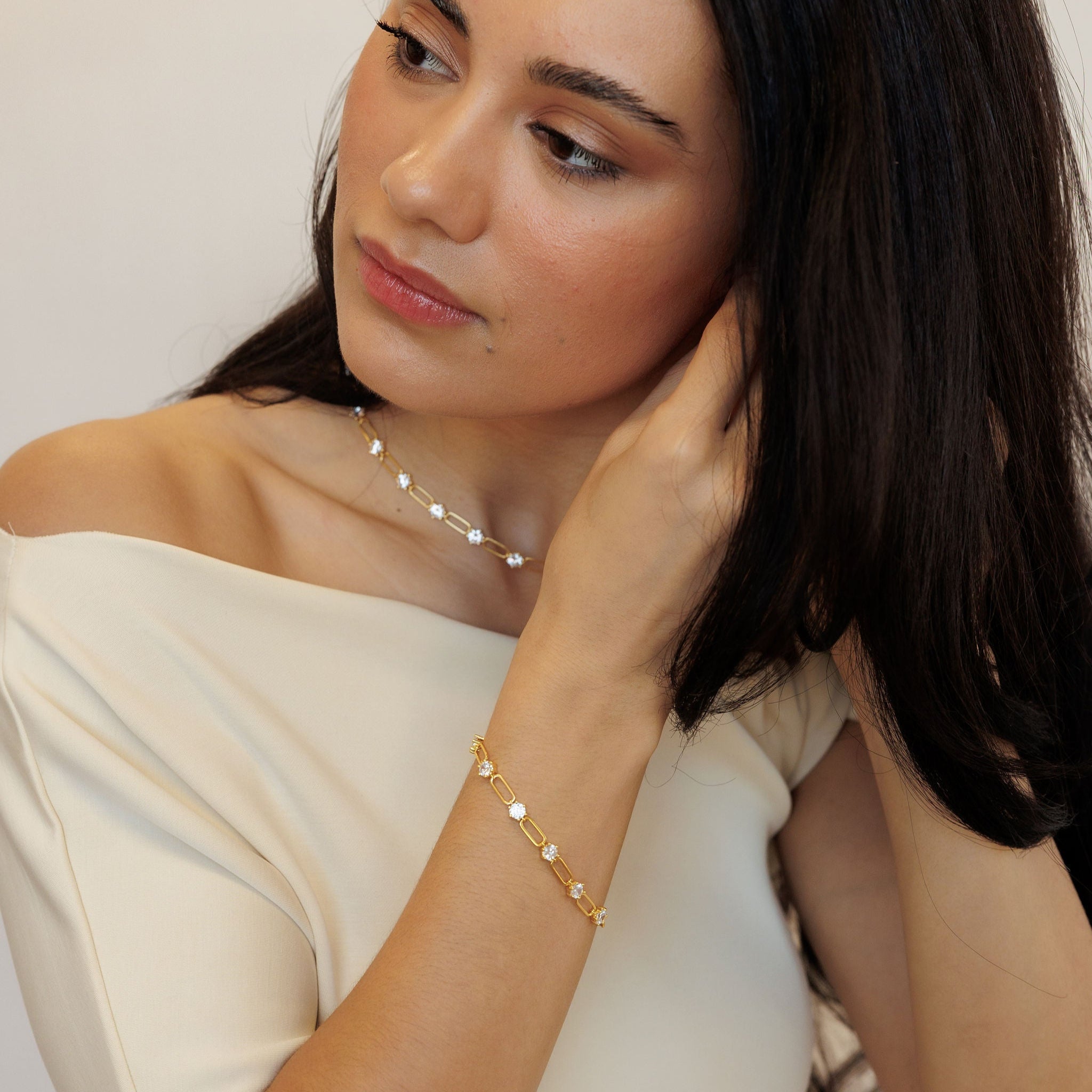 The Vesper Tennis Bracelet is a masterpiece of light and brilliance. Inspired by the array of evening stars, this radiant strand of meticulously set stones catches the light with every movement, evoking a beautiful celestial glow.