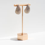 Bold and luminous, the Zara Pavé Drop Earrings shimmer like jeweled droplets in motion. Fully encrusted with brilliant pavé stones, their sculptural drop design creates a striking presence that catches the light from every angle.